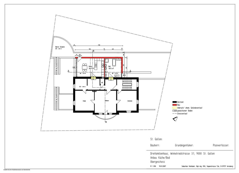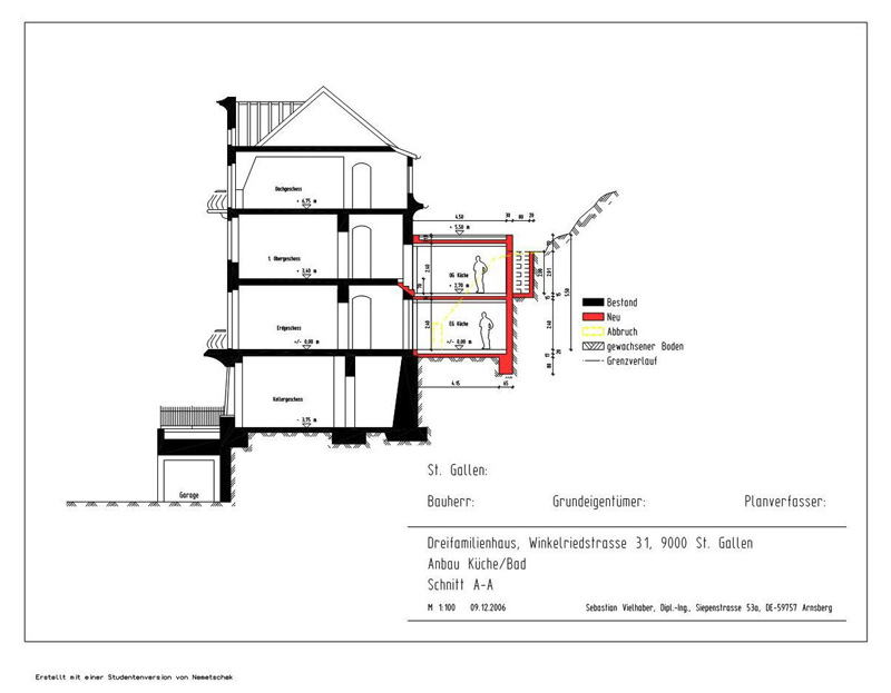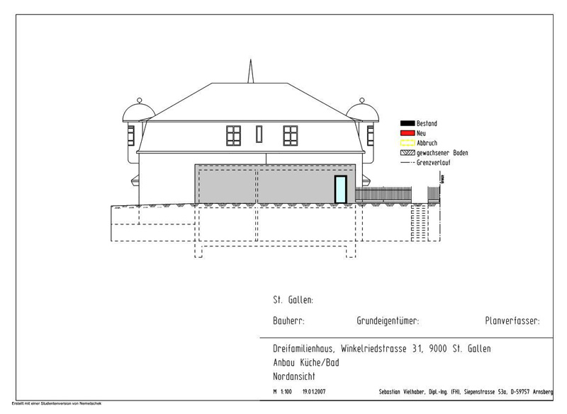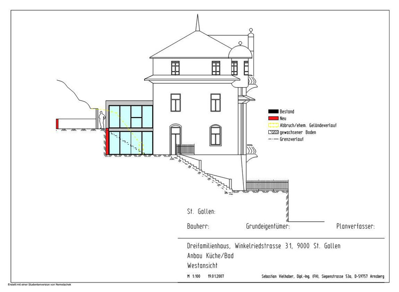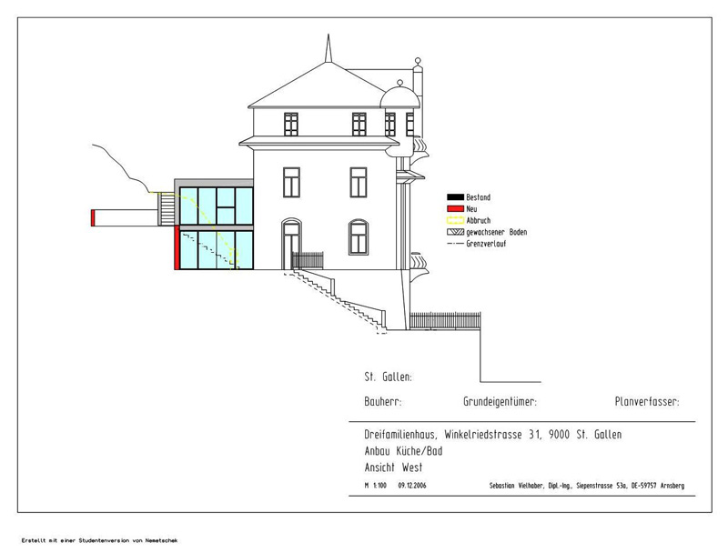 2006 Entwurf und Planung eines Anbaues an ein denkmalgeschütztes Haus in St. Gallen/CH
